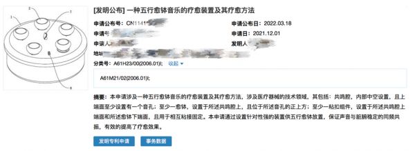 当原来的赛道难以拉开差距,很多人开始努力转向产品差异化。打开国家知识产权局专利公布网站,我们能找到一些造型奇特、功能玄乎、主打智能的新型颂钵,申请日期多在2021年之后。