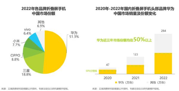 而过去三年,华为在折叠屏市场,均拿下了50%以上的份额,其它品牌全加起来,都不如华为一家多。