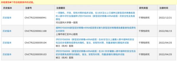 上述4项临床试验,注册时间均在2022年。参与试验的人群,既有18岁-59岁的成年人,也有针对60岁及以上老年人的研究。