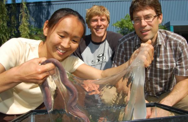 在受到威胁时,盲鳗可以瞬间将大量的水凝结成稠密的黏液。© Andra Zommers
