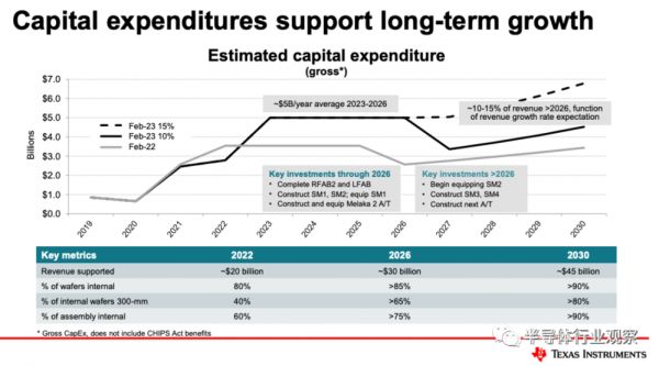 综合来看,TI持续加强自行生产规模,与许多其他IDM企业越来越依赖委外代工形成鲜明对比。