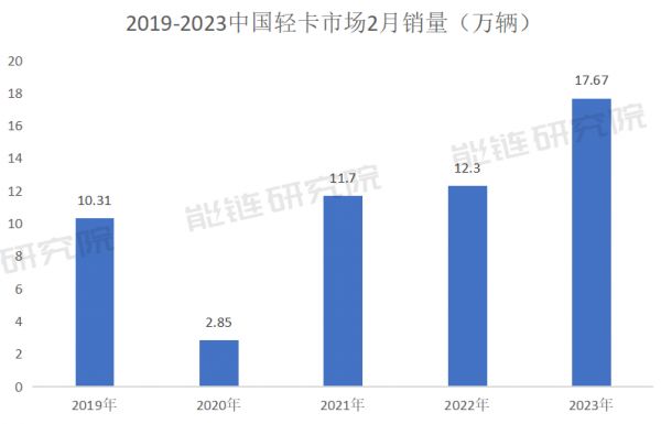 但进入2023年2月,轻卡市场突然爆发。中汽协数据显示,2月份轻卡销量达到17.67万辆,同比增长43.25%,高出重卡14个百分点,环比增速达98%,销量创出了近十年来的新高。