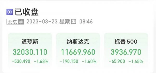 截至收盘,道指跌530.49点,跌幅1.63%,报32030.11点;纳指跌190.15点,跌幅1.6%,报11669.96点;标普500指数跌65.9点,跌幅1.65%,报3936.9点。