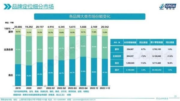结合乘联会的数据看,2019年至今,豪华品牌所占的市场份额在10%至14%之间,折算成零售销量在221万辆至270万辆之间(豪华品牌指BBA、凯迪拉克、捷豹、路虎、沃尔沃、讴歌、特斯拉)。