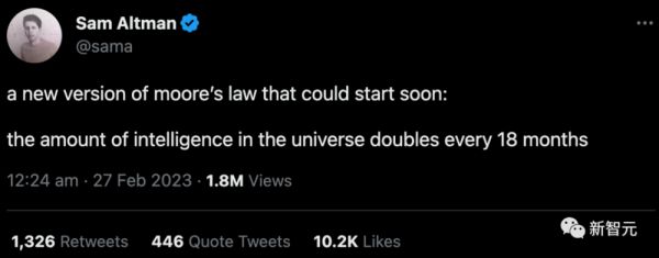 ChatGPT风靡全球之后,OpenAI的创始人Sam Altman曾表示,一个全新的摩尔定律即将出现,宇宙中的智能数量每18个月翻一番。
