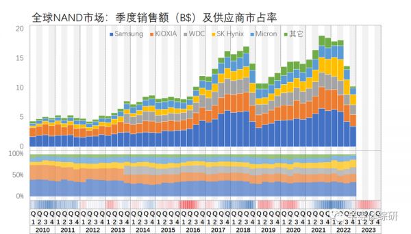 由于DRAM市场更集中、并且利润率更高,所以一般以DRAM的价格追踪存储周期。