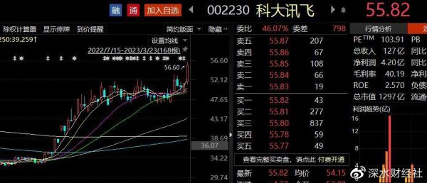 受此影响,3月23日,科大讯飞开盘即涨,盘中最高达到9.80%,逼近涨停,主力资金净买入6.90亿元,截至午后收盘,公司股价报收56.71元/股,直接涨停。