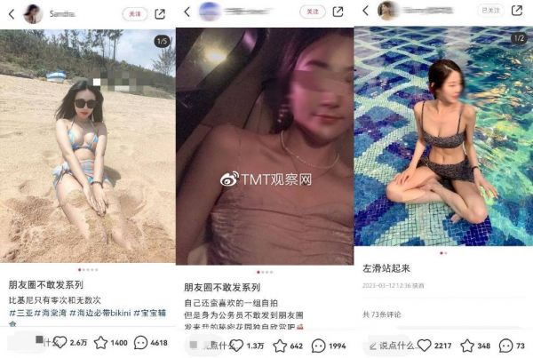 90后的高洋,自从有了孩子以后,近一两年使用小红书比较频繁,日常他会使用小红书搜索做饭、育儿经验贴等博文。直到有一天,他在小红书搜一搜栏目发现平台他推荐了#朋友圈不敢发系列#话题词,因为好奇点击进去后赏心悦目的美女泳衣照、辣妹照扑面而来,起初他看着很开心,并无觉得尺度有异。