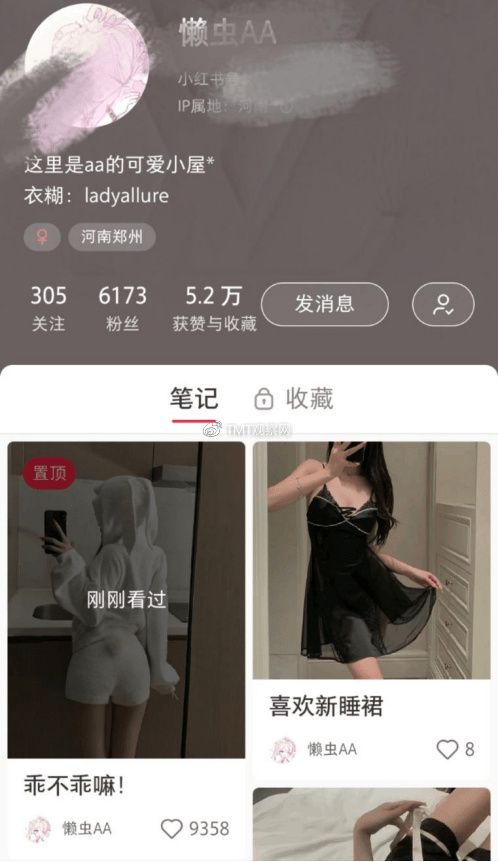 以小红书名字为“懒虫AA”的博主为例。“懒虫AA”定位明确、更新高频,几乎日更一组穿着性感睡衣的图片,更新不足半年目前粉丝就6千多了,多篇笔记在百赞以上,评论区更有男女粉丝询问店铺。