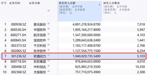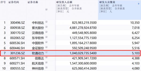 申万IT服务板块2021研发人员数量前十强(来源:同花顺iFinD)