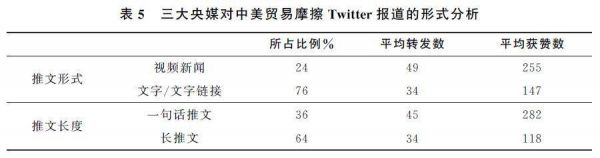 本文同时从推文的形式和长度两个层面分析了央媒Twitter报道的呈现方式(见表5)。