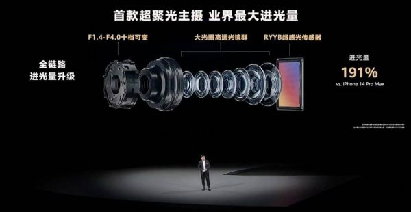 发布会上,余承东着重介绍了“XMAGE影像平台”,该平台通过十档可变光圈+大光圈高透光镜群+RYYB超感光传感器的组合,让P40的进光量同比iPhone Pro Max提升191%,更高阶的P60 Pro,其长焦镜头更换为4800万像素的光学变焦潜望式长焦,进光量相比iPhone Pro Max提升了488%。