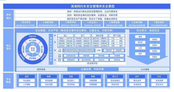 滴滴网约车安全管理体系全景图也在此次开放日上公布。全景图显示,滴滴确立了三大安全目标:降低安全事件发生概率、对安全事件处置妥当、尽职尽责。