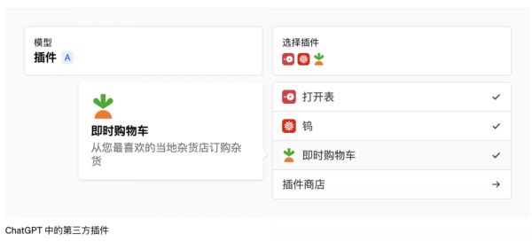 OpenAI官方给出的实例是:在周六预定一家素食餐厅,在周日给自己制定素食菜单,并计算卡路里。那么,你可以让ChatGPT接入餐厅预订插件OpenTable,数据科学插件Wofarm,以及电商插件Instacart。