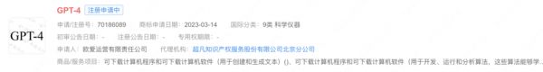 虎嗅最近注意到一个有趣的信息,欧爱运营有限责任公司(OPENAI OPCO, LLC)在中国工商部门申请注册了“GPT-4”商标,国际分类为科学仪器,当前商标状态为申请中。此前,该公司还申请注册了一枚国际分类为网站服务的“WHISPER”商标,也就是OpenAI最近刚刚开放API的语音识别模型。