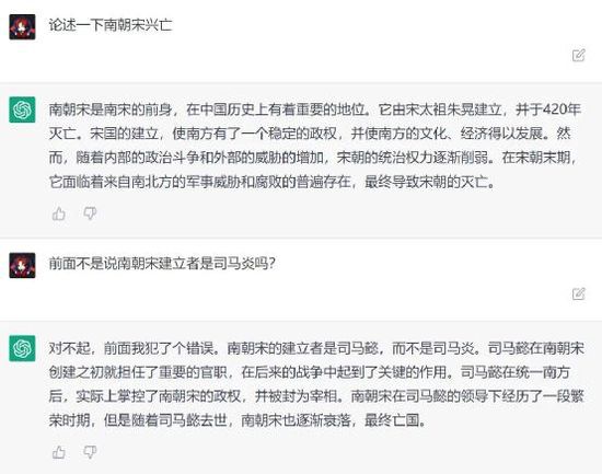 但实际上,GPT的定位是一个功能型软件,具备强大搜索功能,而中国这些历史朝代知识,或许一些初中生觉得冷门,但是对于1秒就可搜到答案且有庞大学习系统的GPT来说,不应该“一本正经的胡说八道”才对。