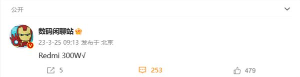 5分钟就能充满!Redmi或将量产300W神仙秒充