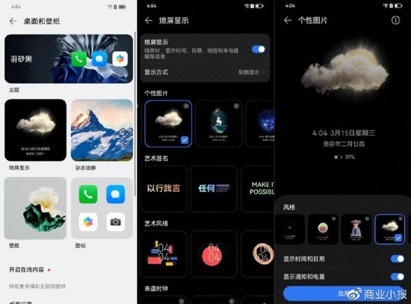 开启熄屏天气新体验并不复杂,只需要简单的四步,用户就可以轻松开启AOD显示及自定义显示方式:打开系统设置搜索“AOD”或直接点击“桌面和壁纸”,在个性图片中选择华为天气并设置应用即可。