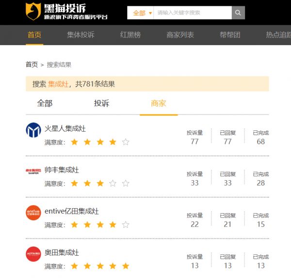 小雷在黑猫投诉平台上搜索关键词“集成灶”,立马出来781条投诉信息,其中投诉量最多的赫然就是市场份额排名第一的火星人。其市场销量和销售额占比分别为20.2%、25.1%,而投诉量也达到77条,同样排名第一。好巧不巧的是,315晚会前夕,1818黄金眼曾报道,杭州林女士的家人在给宝宝环尿不湿的时候,厨房突然传来巨响,过去一看发现是集成灶下层的玻璃炸了。虽然不清楚是否有人为因素在内,但这质量确实有点堪忧。