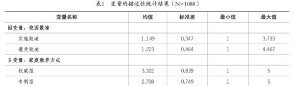 (1)在中国情境下,家庭教养方式对青少年校园欺凌(实施欺凌及遭受欺凌)是否具有解释力?