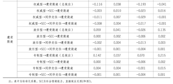 2. 社会情绪能力在教养方式与校园欺凌关系中的中介作用
