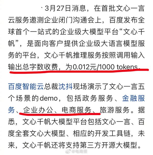 #文心千帆发布# 百度文心一言升级,文心千帆横空出世。可实现三分钟做ppt、数字人直播带货等操作,按输出字数收费。[思考]#百度文心一言升级#