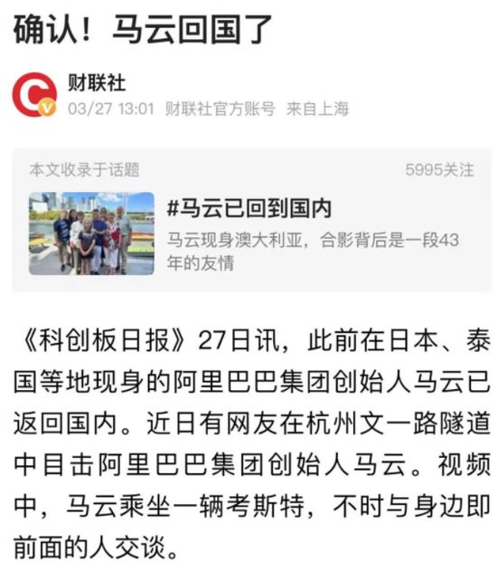 马云回国!这是重大标志性事件