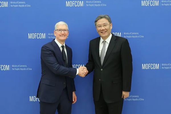 据商务部网站消息,3月27日,商务部部长王文涛会见苹果公司首席执行官库克。王文涛介绍了中国式现代化的主要特征和内涵,强调中国坚定不移推进高水平开放,稳步推动规则、规制、管理、标准等制度型开放,愿为包括苹果公司在内的外资企业提供良好的环境和服务。双方就苹果在华发展、稳定产业链供应链等议题进行了交流。