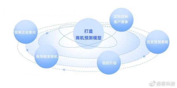 其次,预测企业意向,推荐精准商机。启商多基于潜客画像分和企业行为意向分打造了独有的启客评分,实时预测客户潜在购买意向,为企业智能推荐高匹配度商机。