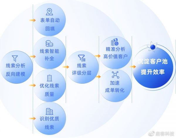 首先,线索数据智能补全。启商多通过Opon API对于线索分析反向建模,实现全渠道智能表单的自动回填,针对线索数据的智能补全,优化线索质量,助力销售识别有效线索。