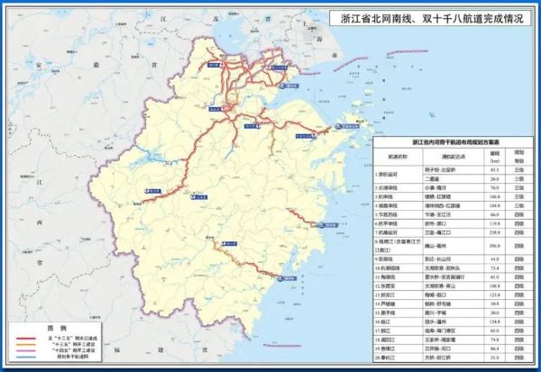 其主要规划内容包括贯通千吨级航道,提升钱塘江、杭甬运河三级航道整治,构建“Y”型内河主骨架航道至千吨级,高等级航道里程达477.6公里等。