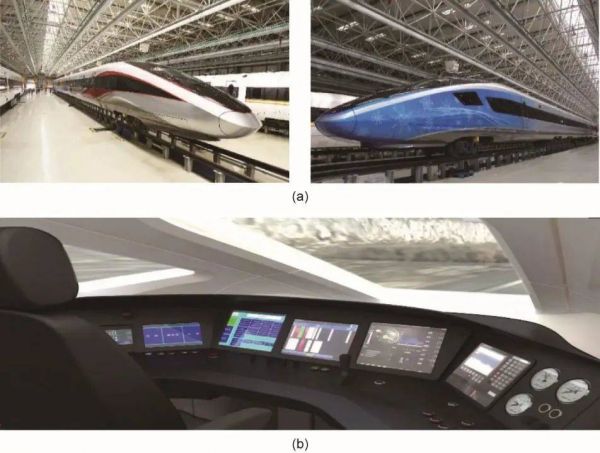 图5 京张高铁智能装备。(a)智能动车组;(b)时速350 km自动驾驶。