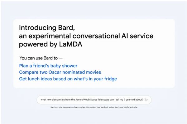 上周Bard开启了公测。总体来看,谷歌的 Bard 跟 New Bing 的使用模式和功能基本一致。此次 Bard 也为用户提供了一个单独的聊天界面,用户可以在文本框中进行提问和搜索,比如让 Bard 帮你写一个计划、列一个食谱、帮你搜索一个冷知识等。但在定位上,谷歌强调 Bard 并不是其搜索引擎的替代品,而是“搜索的补充”, Bard 自称为“你具有创造力的得力协作者(Collaborator)”。