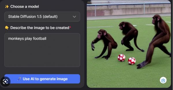 You.com生成的猴子踢球的照片,图片来自:YouChat