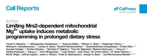 [1] Travis R. Madaris et al, Limiting Mrs2-dependent mitochondrial Mg2+ uptake induces metabolic programming in prolonged dietary stress, Cell Reports (2023). DOI: 10.1016/j.celrep.2023.112155