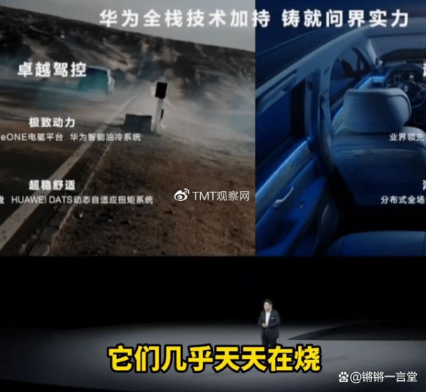除了调侃手机界的苹果和三星,在汽车领域,夸奖问界之余,余承东也很不留情调侃对手:“问界的车型还没有一辆车出现被烧掉的问题,很多车几乎天天在烧。”