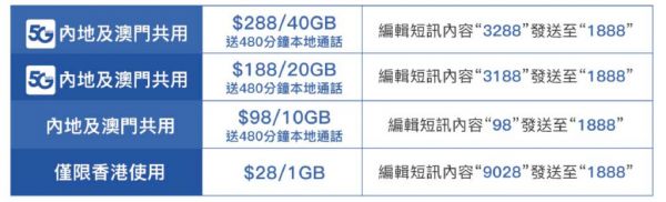 其中,最低档的1GB流量包仅限中国香港地区使用,另外三款均可在内地和中国澳门共用。而且,只有188元和288元流量包支持5G,其他两款都是4G流量包。