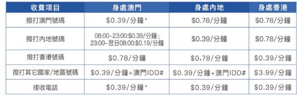 其次,这张手机卡的语音和短信价格更高。按照官方介绍,大湾区预付卡在内地港澳中某一个地区,拨打当地电话资费为0.39澳门币/分钟(0.33元人民币/分钟),而我们日常用的内地手机卡一般是0.15元/分钟甚至0.1元/分钟。