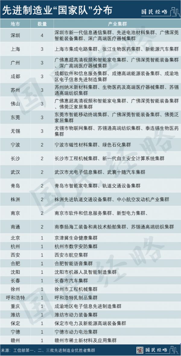 目前,根据《中国工业第一大市,易主了》一文分析,成都已有三个先进制造业“国家队”集群,在主要城市里位居前列。