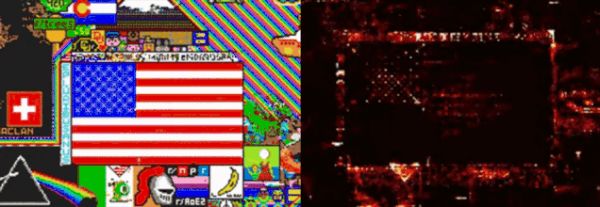除此之外,现有的艺术作品还不能坐以待毙,必须不断地加强这些作品,重新征服他们网格中的每一个像素,以防止The Void渗透到他们的作品中。看看社区r/murica是如何击退The Void的:一旦The Void吞没了国旗,用户就会成群结队地登上画布,以夺回“美国领土”,热图上整个国旗像素强度的峰值也清晰地呈现了这一过程。