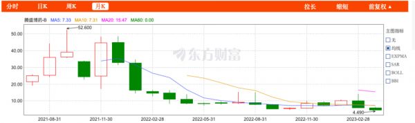 尽管如此,股市上的连锁反应还是一发不可收拾——仅3月28日一天“腾盛博药-B”的股价就暴跌了9.18%,达到了4.49元/股的新低,相比今年2月的峰值14.16元,跌幅68.29%。