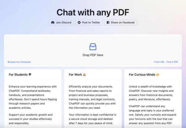 如ChatPDF,能够对拖拽PDF文件进行资料库搜索、重点提取、逻辑梳理等等,代入互联网产品的模式,这一功能应该出现在某些财报分析类软件的底层,形成一个后端的组合能力,通过对财报的抓取,下载、导入、分析,最终得出分析报告。