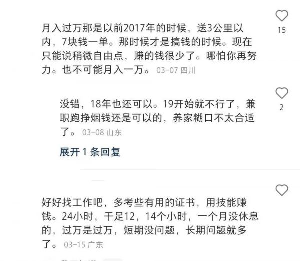 在“骑手月入过万”话题讨论下,网友表示“2017年,那时候才是搞钱的时候”。