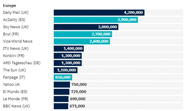 TikTok上的欧洲头部新闻媒体账号(按关注用户量排序)