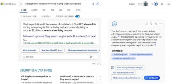 本文来自微信公众号:机器之能 (ID:almosthuman2017),作者:泽南,原文标题:《开始赚钱模式!微软ChatGPT版新必应加广告了》,题图来自:视觉中国