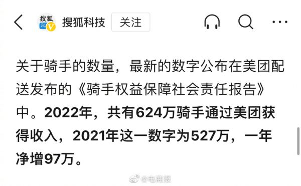 #美团去年新增97万骑手# 一年新增97万骑手,外卖小哥吐槽人多单少,骑手界现在也卷到起飞了![喵喵]