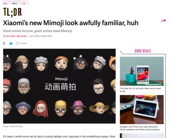 外媒也对此事进行了跟踪,对于小米一向比较“严苛”的 The Verge,将其形容为“糟糕的模仿”: