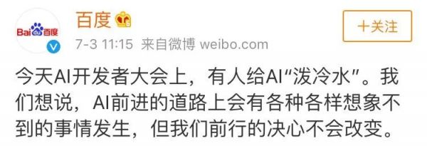 上午发布会结束后,百度方面对该事件作出官方回应称,“今天AI开发者大会上,有人给AI‘泼冷水’。我们想说,AI前进的道路上会有各种各样想象不到的事情发生,但我们前行的决心不会改变。”