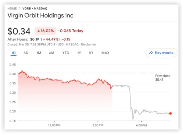 本周四,维珍轨道盘前跌超16%,在盘后交易时段继续重挫44%。
