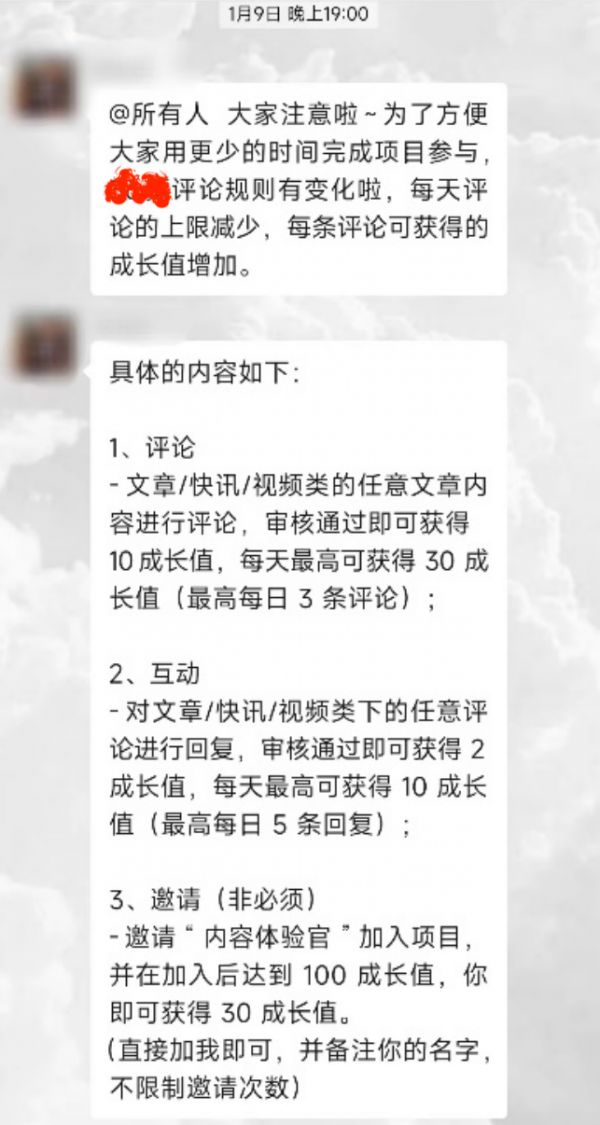 大学生陈冬报名了一家互联网媒体的“内容运营体验官”活动。正式开始后,她才知道所谓的“内容体验”就是给平台上的文章写“真人”评论。项目介绍中的“量身打造的成长体系”,就是写评论积累到一定积分能换到一份证明、一个帆布包,以及一个线下实习的机会。